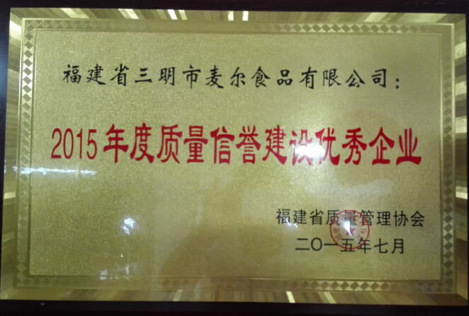 2015年8月11日,公司榮獲福建省“2015年度質(zhì)量信譽(yù)建設(shè)優(yōu)秀企業(yè)”稱號。