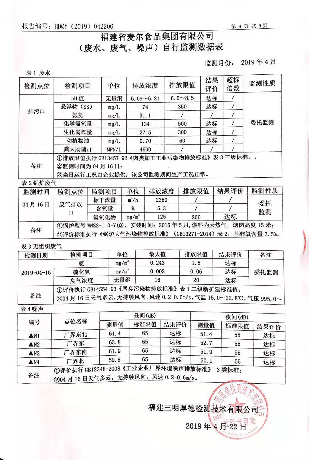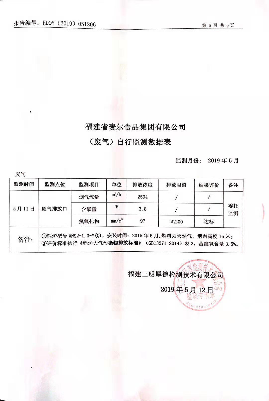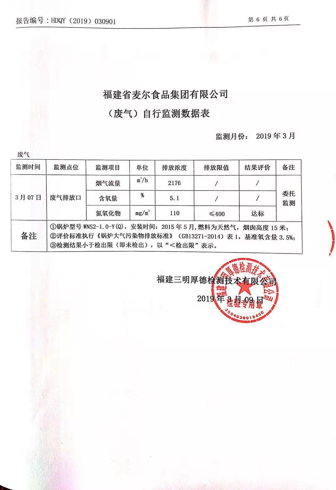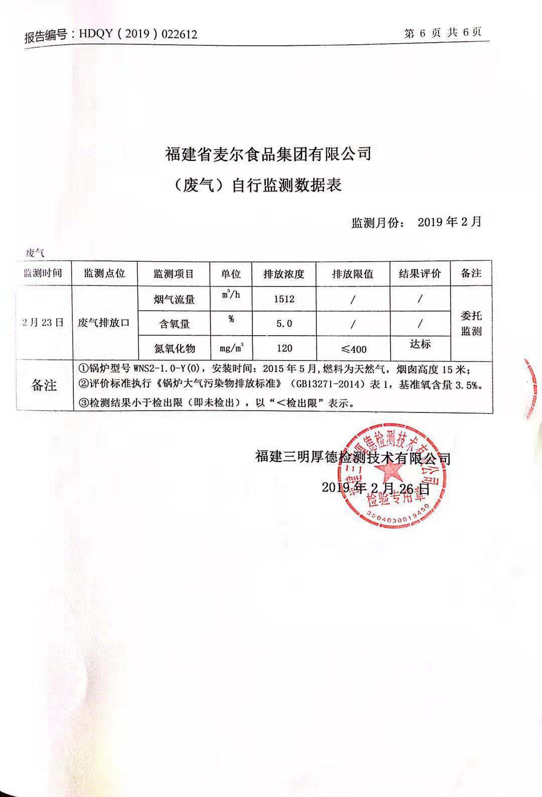 2019年麥爾食品集團(tuán)-環(huán)境監(jiān)測(cè)報(bào)告公示