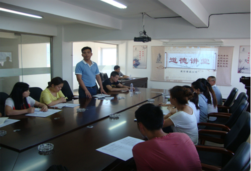 公司根據(jù)三明市委、市政府和食安辦、質(zhì)監(jiān)局的部署,積極開展“誠信做產(chǎn)品”主題活動。2013年8月5日下午15:00,公司舉辦了“道德講堂”培訓。在培訓課上,員工們首先唱起了歌曲《公民道德歌》;其次觀看了短片《體驗雙桂坊:放入道德良心 做出百味美食》;公司生產(chǎn)副總經(jīng)理王亞輝談了觀后感悟,使員工們對“民以食為天,食以安為先;己所不欲,勿施于人”有了更深的理解和認識。最后,在一曲《祝你平安》歌曲中結(jié)束了這次有意義的培訓活動。這次培訓由公司總經(jīng)理助理陳錦鳳主持,董事長陳瑞躍和50多名員工參加了培訓;三明市質(zhì)監(jiān)局的領(lǐng)導也應(yīng)邀親臨現(xiàn)場指導。